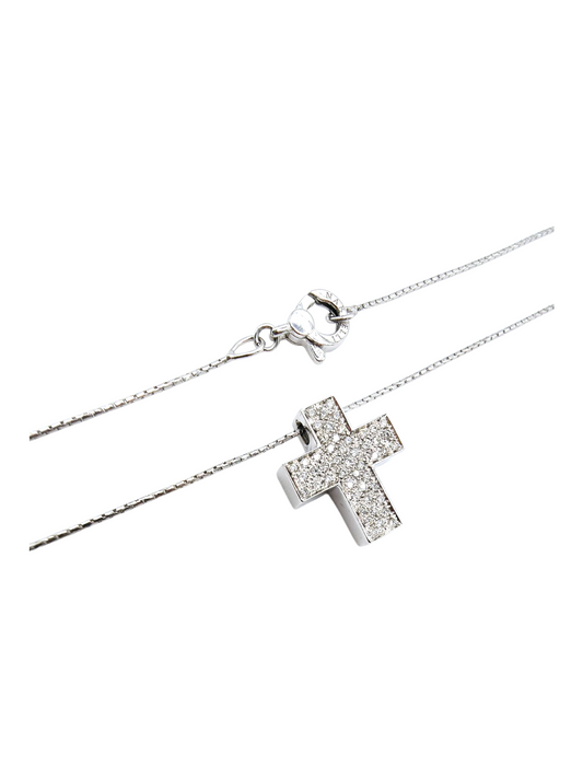 ✨ Collana Crocifisso con Zirconi in Oro 18 Carati Questa collana in oro bianco 18 carati è l'espressione perfetta di fede e lusso moderno. Il pendente a crocifisso presenta un design minimalista e contemporaneo, con la barra orizzontale impreziosita da un pavé di brillanti zirconi luminosi. Materiale: Oro 18 carati...