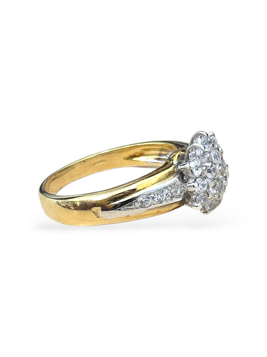 Questo bel anello ti affascinerà per la sua lucentezza. Realizzato a mano con 2 ori, giallo e bianco e zirconi incastonati che formano al suo apice una grande corolla. Realizzato a mano in Italia. Completo di elegante packaging e certificato. Peso: 5,8 gr Vuoi una misura diversa? CONTATTACI LE...