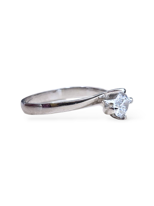 Solitario in oro bianco realizzato a mano modello Valentino con pietra centrale taglio brillante.