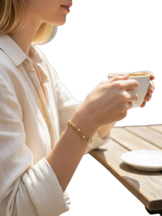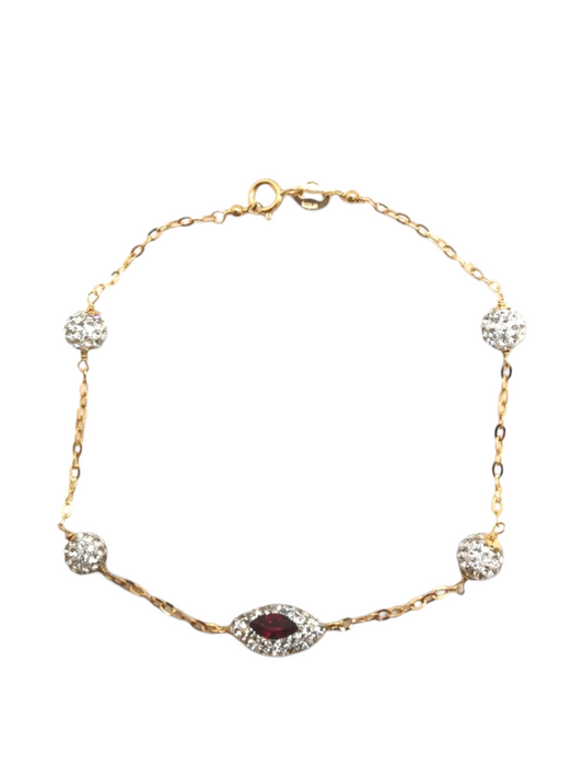 Bracciale realizzato in oro giallo 18kt con catenina rolò e sfere in resina e cristalli.