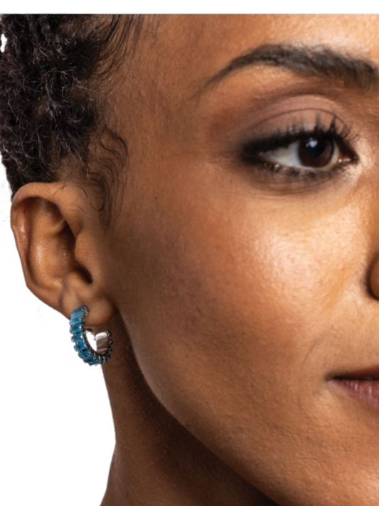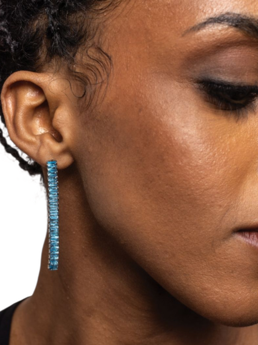 Orecchini a cerchio tennis con cristalli baguette turchese