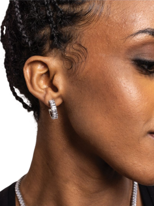 Orecchini a cerchio tennis con cristalli baguette bianchi