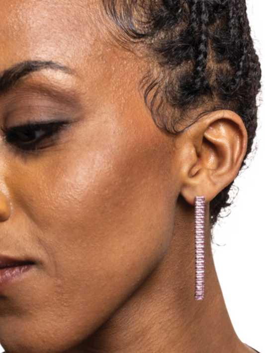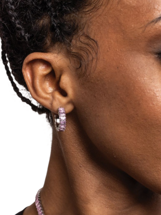 Orecchini a cerchio tennis con cristalli baguette rosa