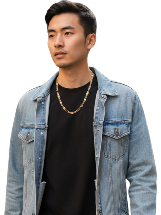 Girocollo realizzato in oro giallo 18kt catena 1+1 finitura lucida con maglie alternate con finitura in parte satinata.