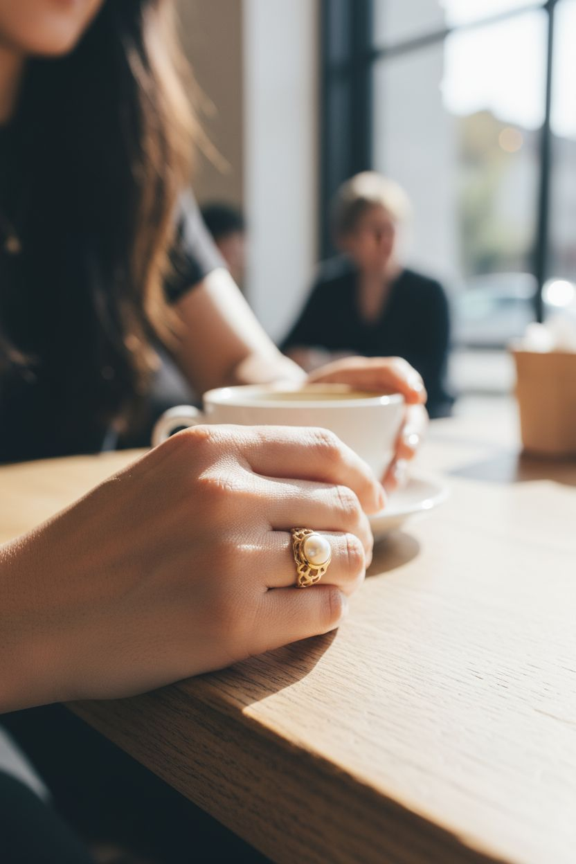 Anello dal sapore barocco realizzato in oro giallo 18kt con mezza perla Mabe'.