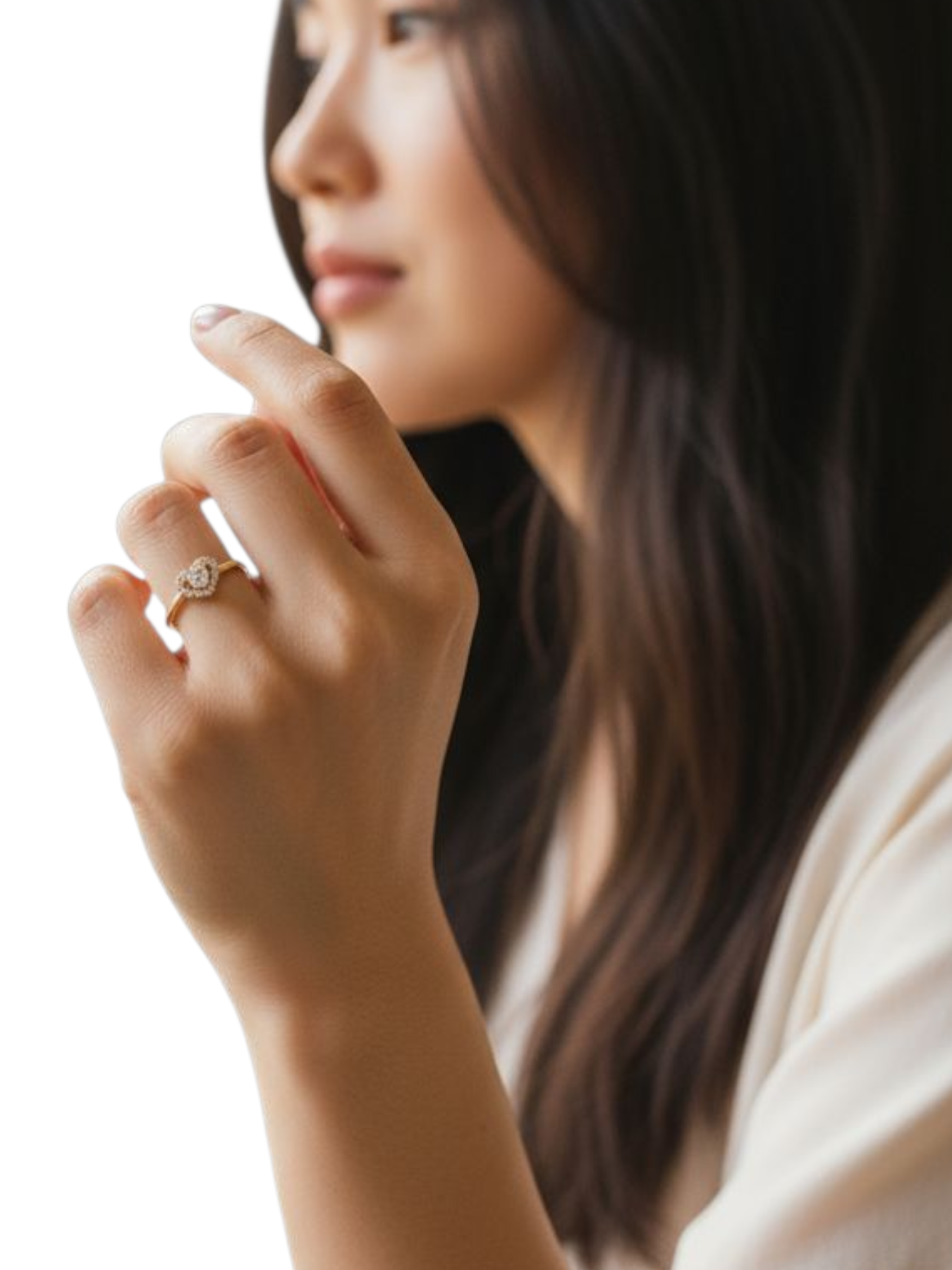Anello realizzato in oro a finitura rose' con cuore centrale arricchito da 16 zirconcini taglio brillante laterali incastonati a 4 griffes e uno centrale incastonatura a 3 griffes arrotondate.