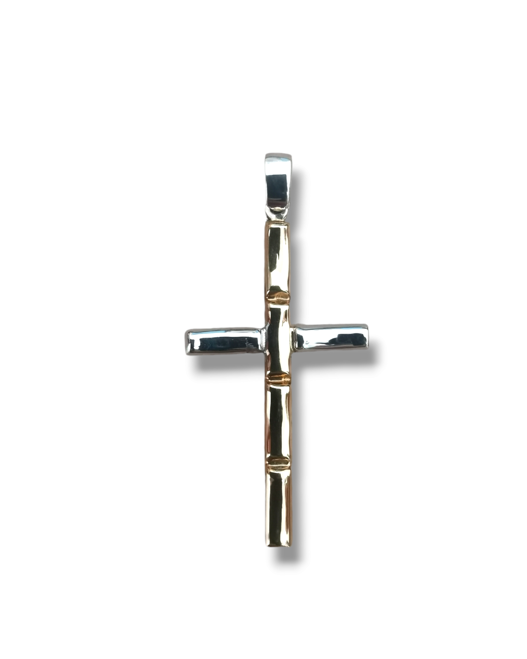 Ciondolo realizzato e rifinito a mano in Italia in oro giallo e bianco 18kt a finitura lucida.