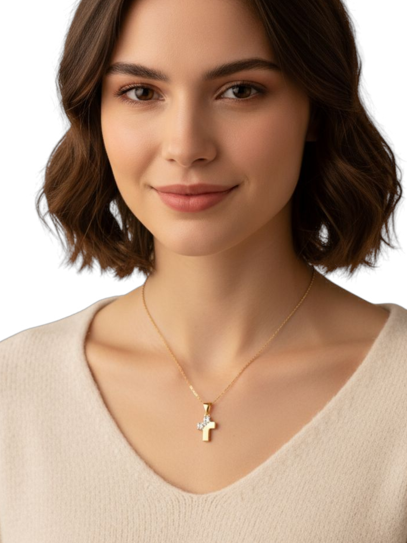Questa splendida crocetta è un gioiello moderno e raffinato, perfetto per essere indossato ogni giorno o come prezioso regalo.