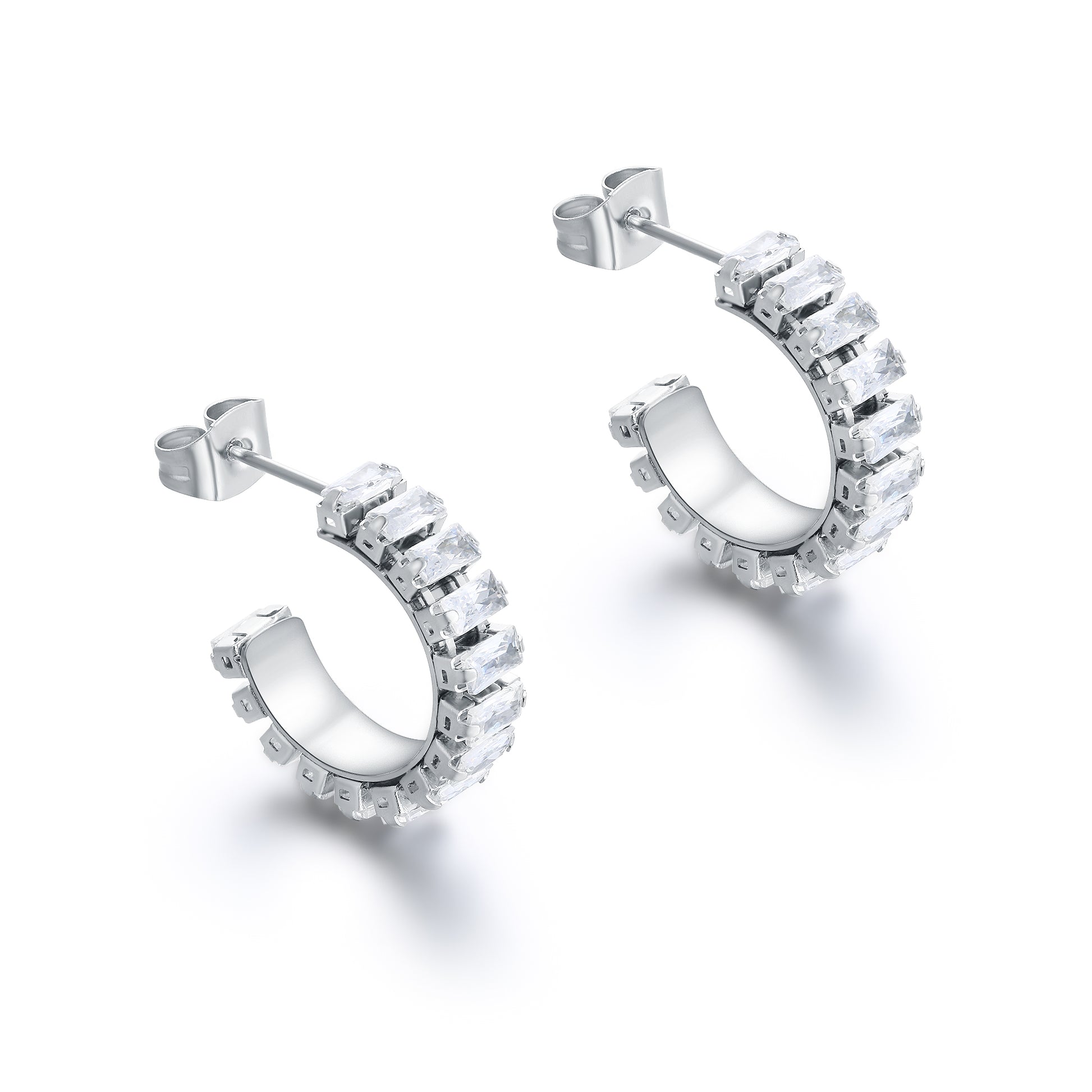 Orecchini a cerchio tennis con cristalli baguette bianchi