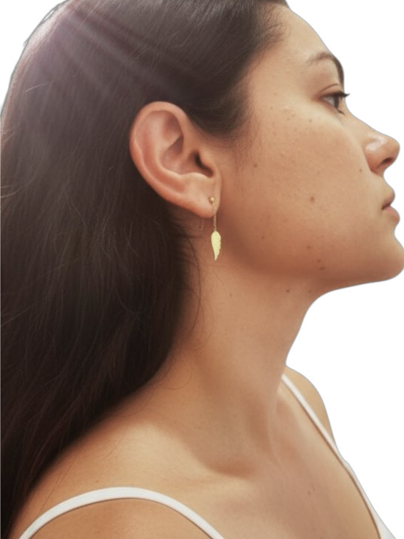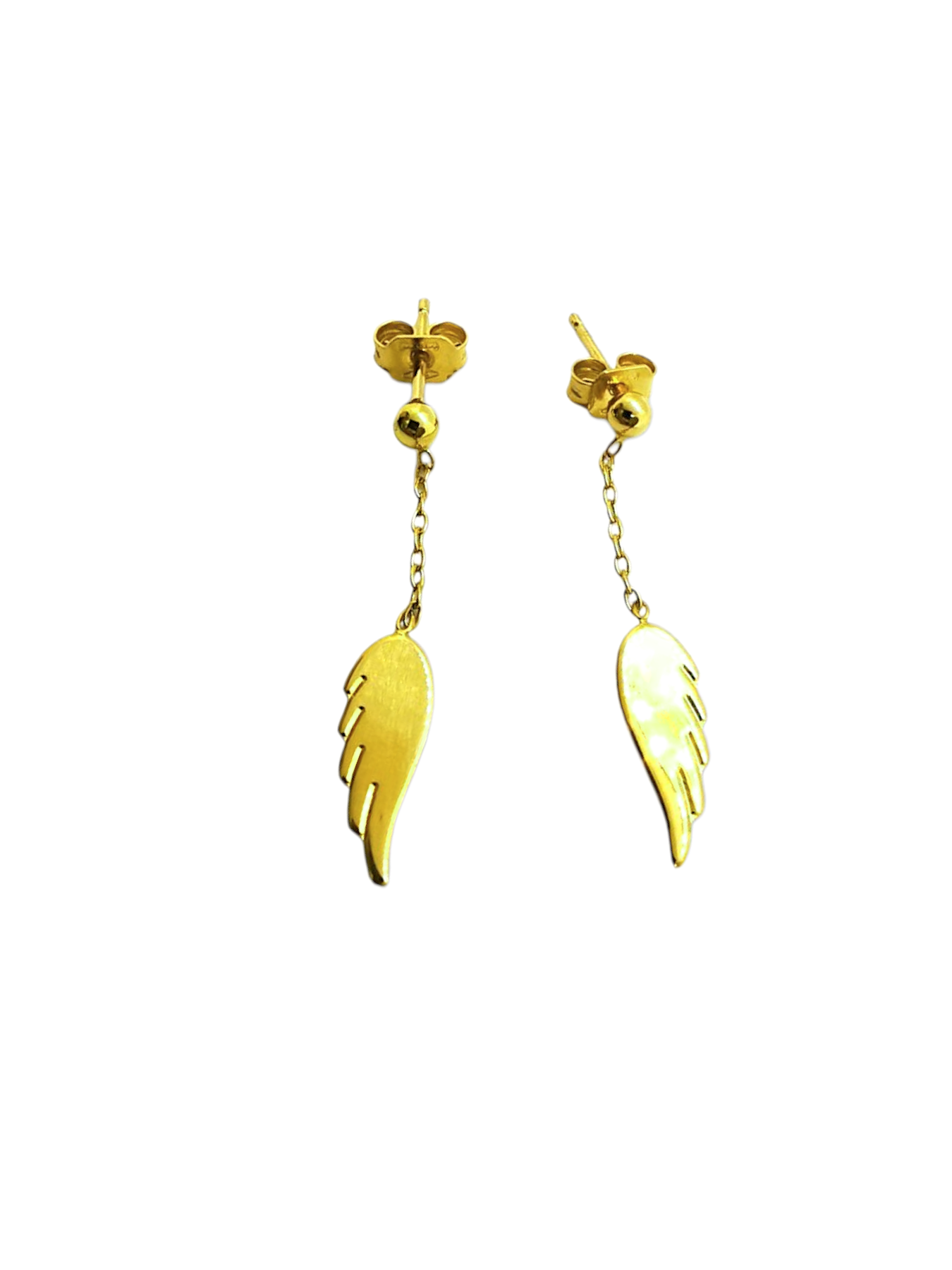Orecchini pendenti realizzati in oro giallo 18kt con ala pendente finale a finitura lucida.