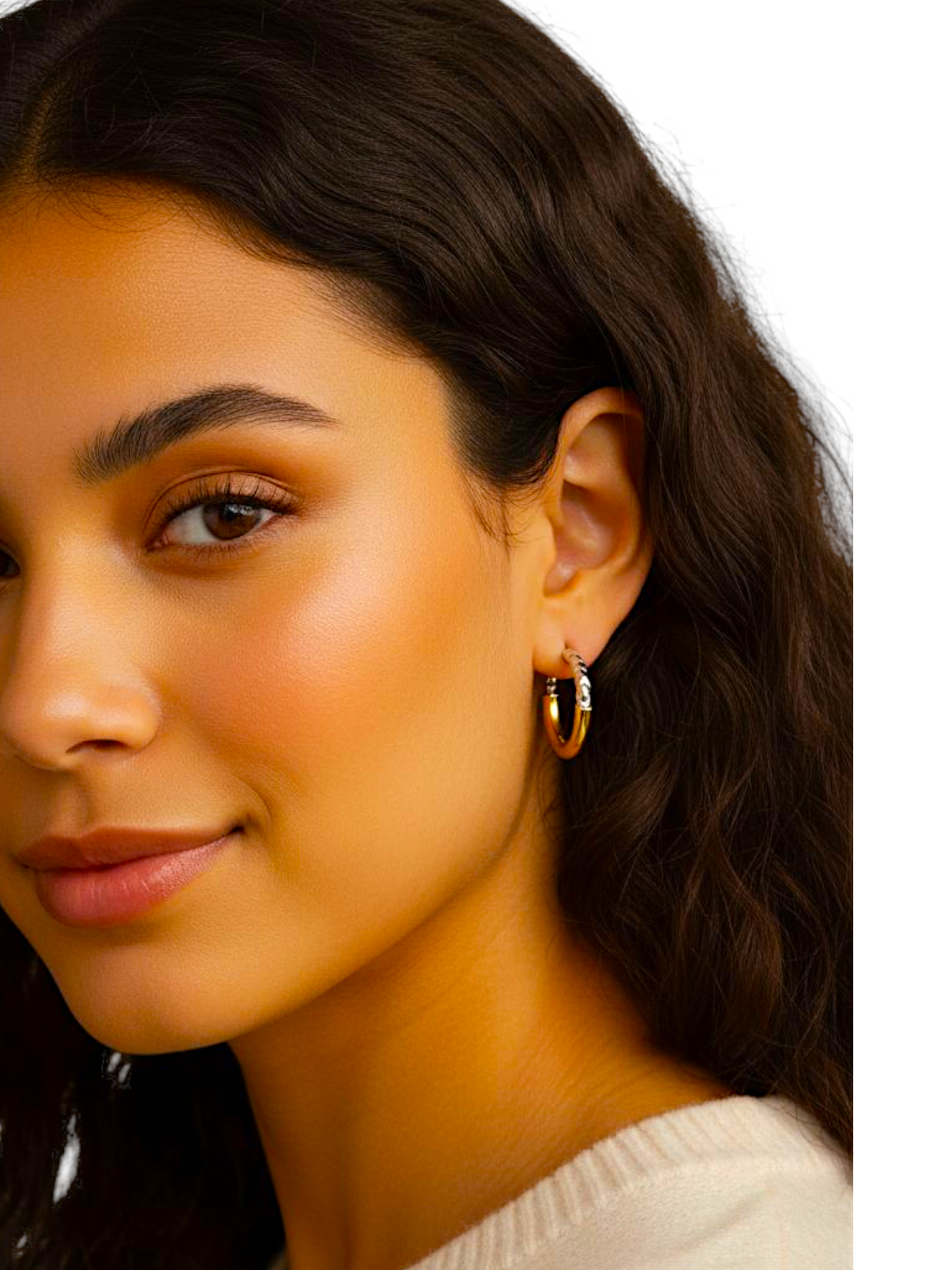 Cerchi a canna tubolare in doppio colore con particolare lavorazione martellata su oro bianco e finitura lucida su oro giallo.