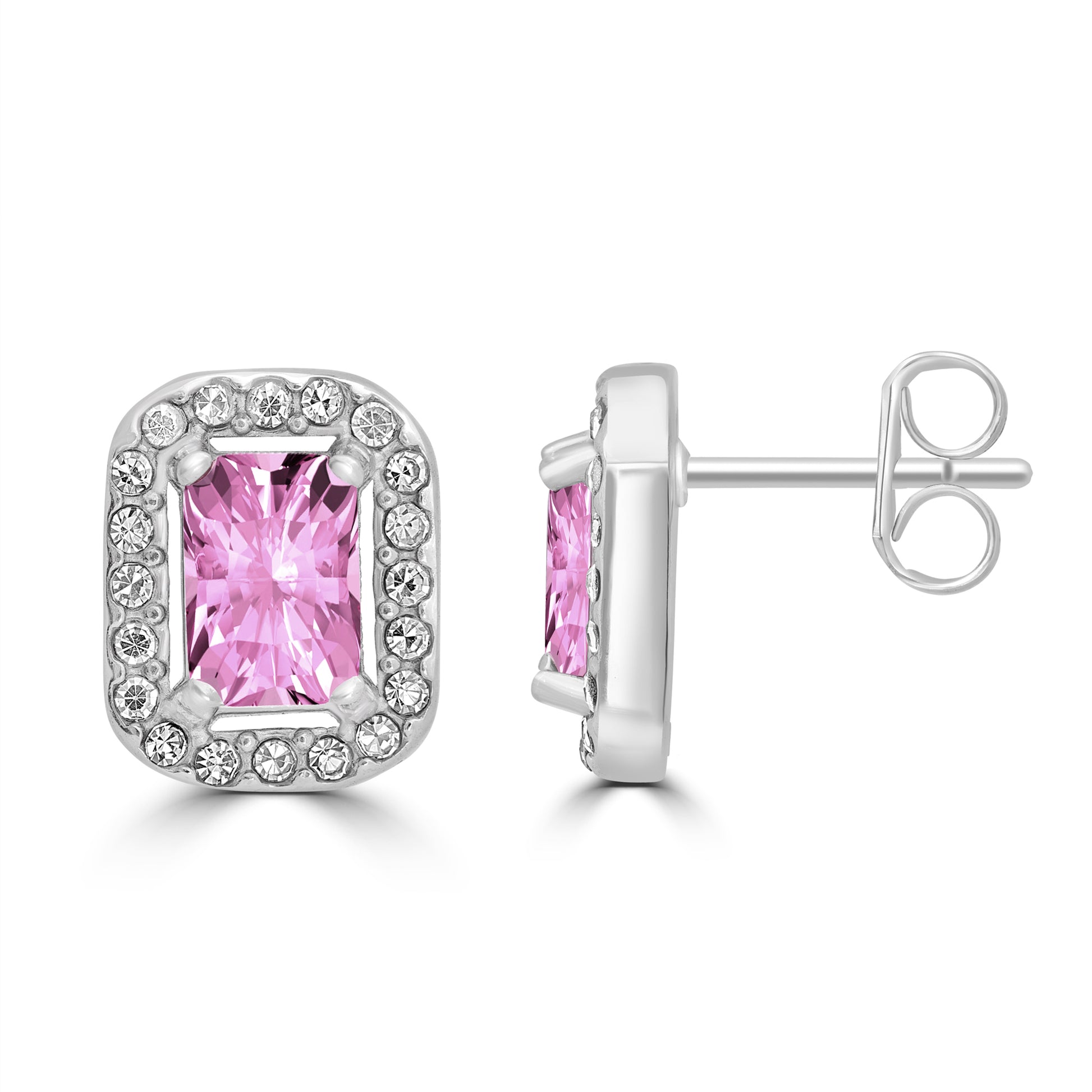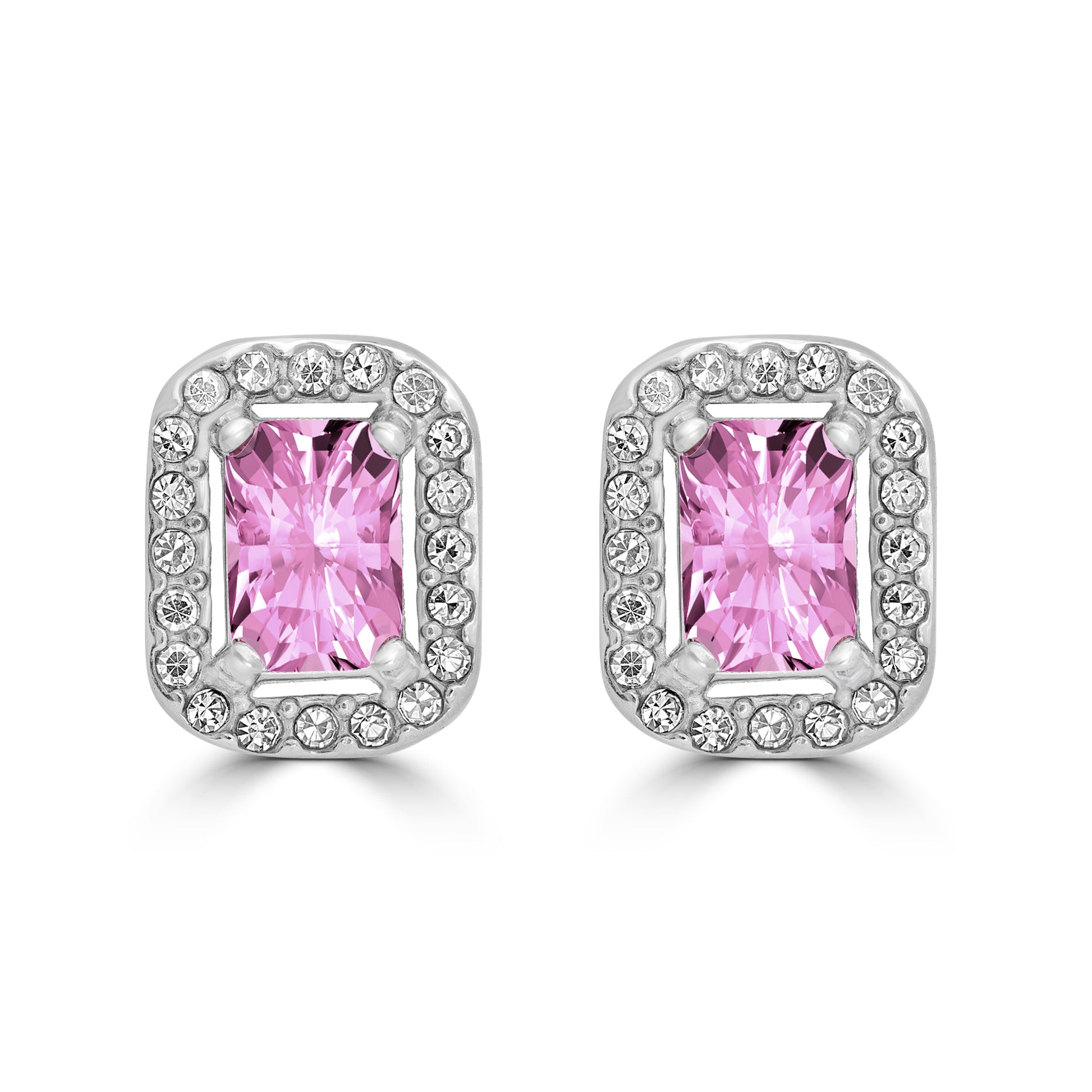 Orecchini con cristallo rosa modello rettangolare