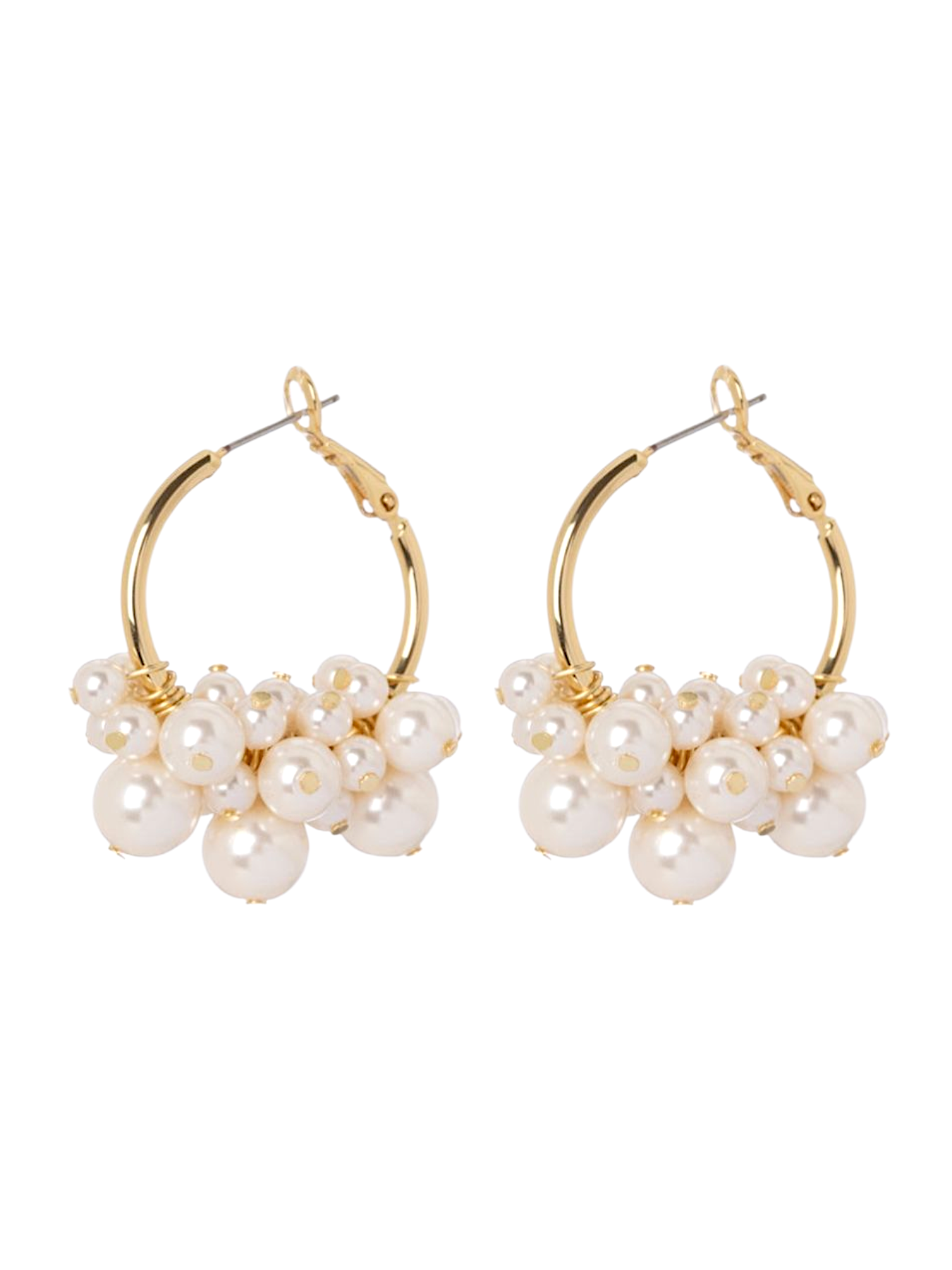 Orecchini a cerchio in Ottone anallergico e perle di vetro di varie dimensioni.