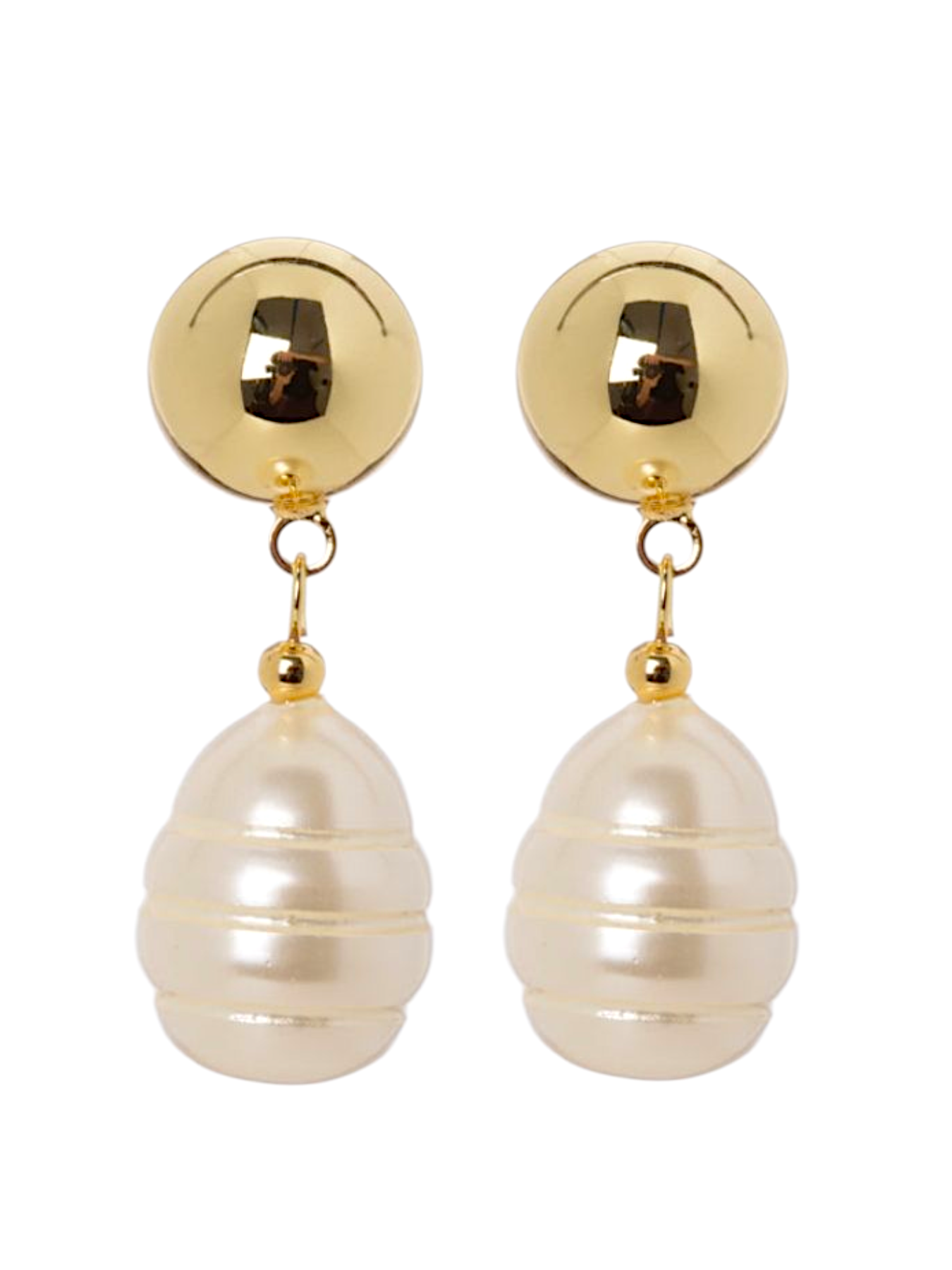 Orecchini pendenti in Ottone anallergico e perla barocca. Lunghezza totale 3,8 cm. Chiusura perno e farfallina.