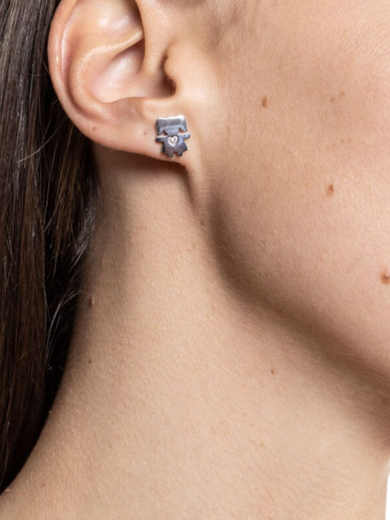 Orecchini lobo soggetto bimba con cristallino rosa