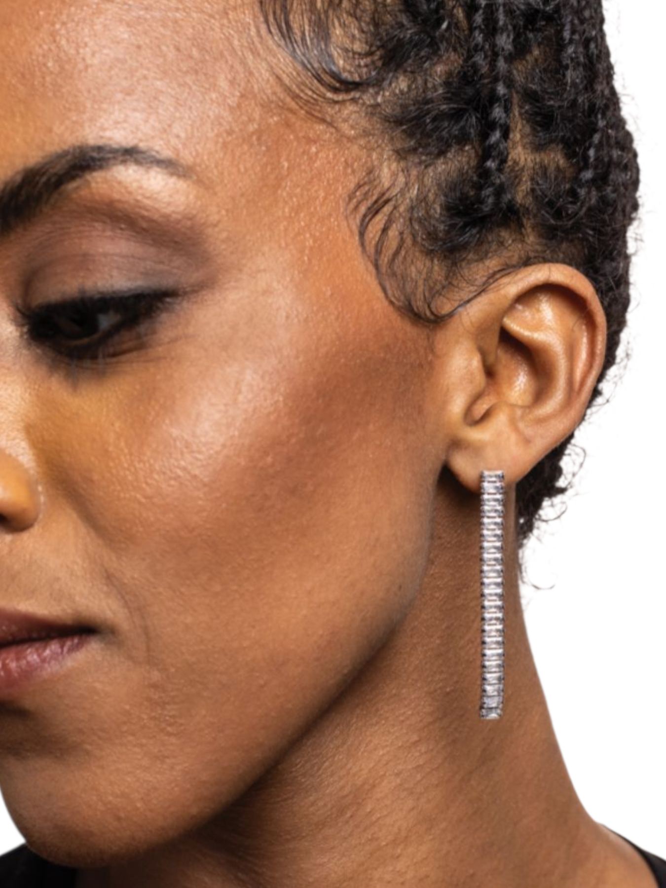 Orecchini pendenti tennis con cristalli baguette bianchi