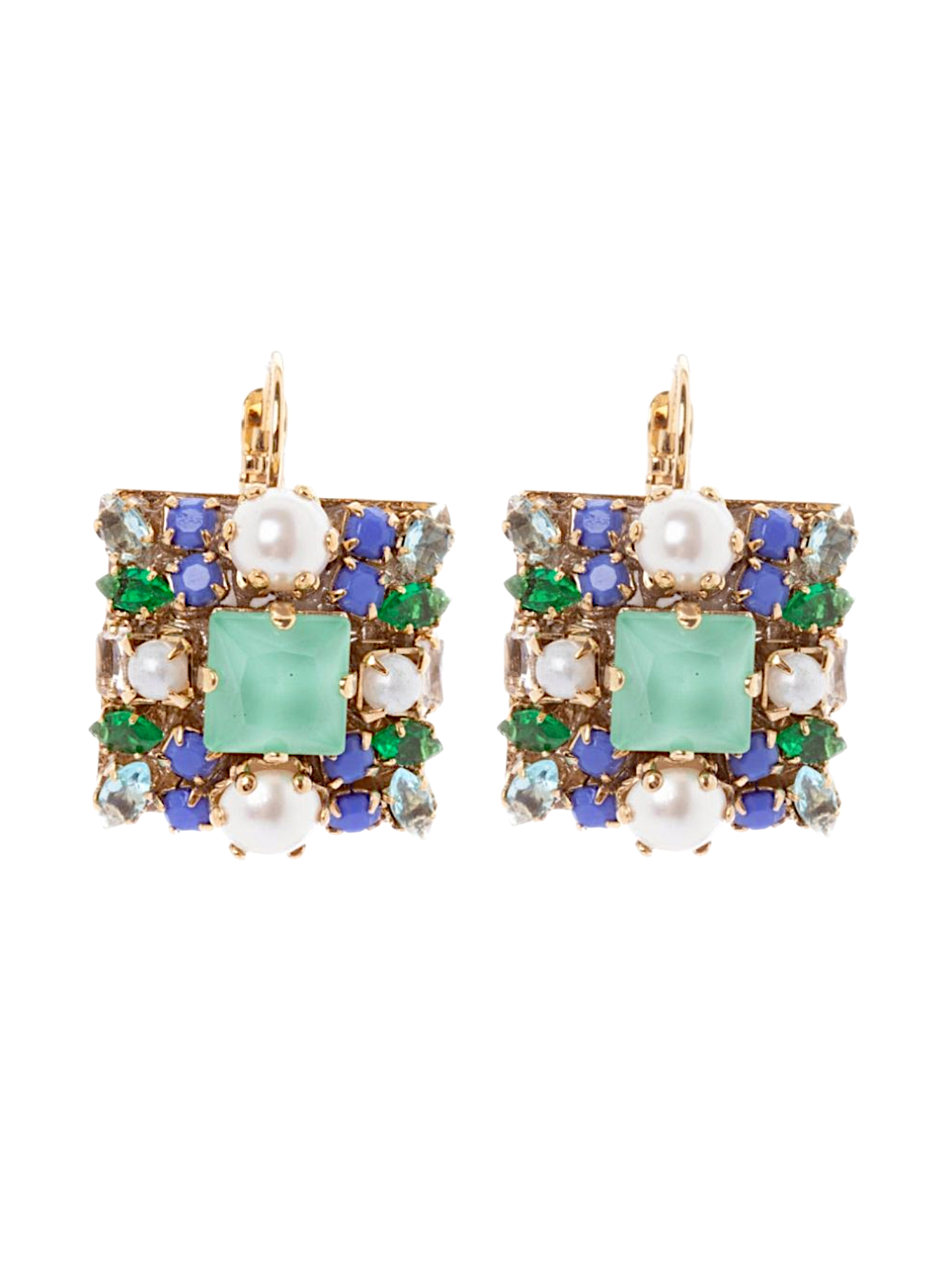 Orecchini in Ottone anallergico e Zirconi smaltati chiusura a monachina con clip.