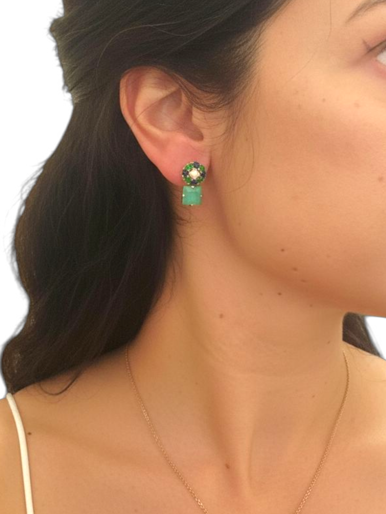 Orecchini in Ottone anallergico e Zirconi smaltati con chiusura a perno e farfallina.