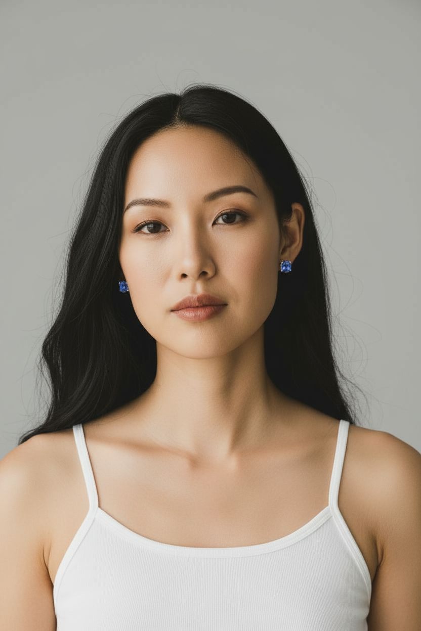 Orecchini punto luce con pietre di zaffiro naturale realizzati in oro bianco 18kt con castone a 4 griffes arrotondate.