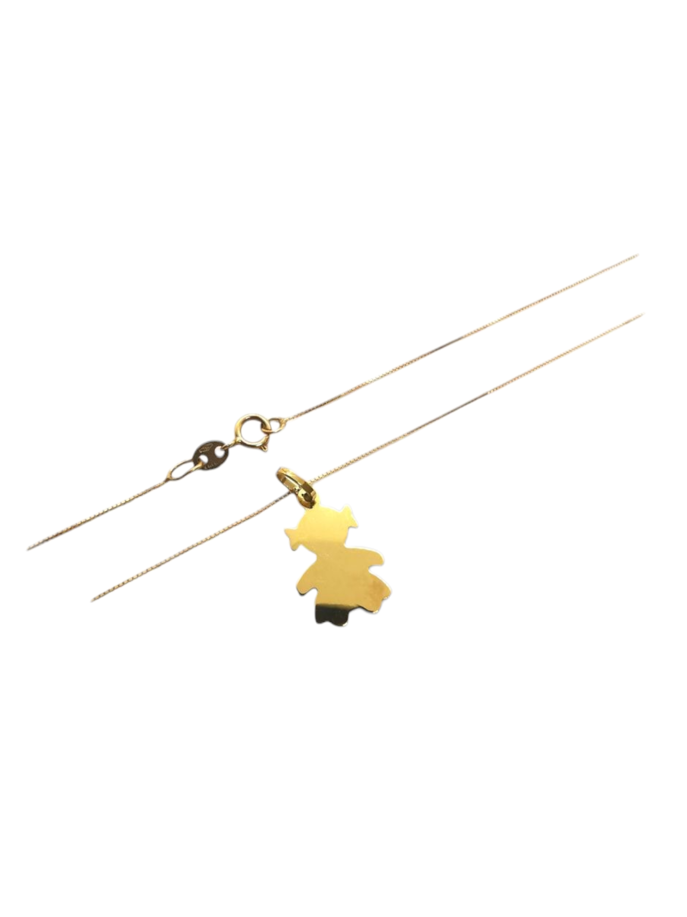 Girocollo realizzato in oro giallo 18kt con catenina veneziana e ciondolo bimba a finitura lucida.