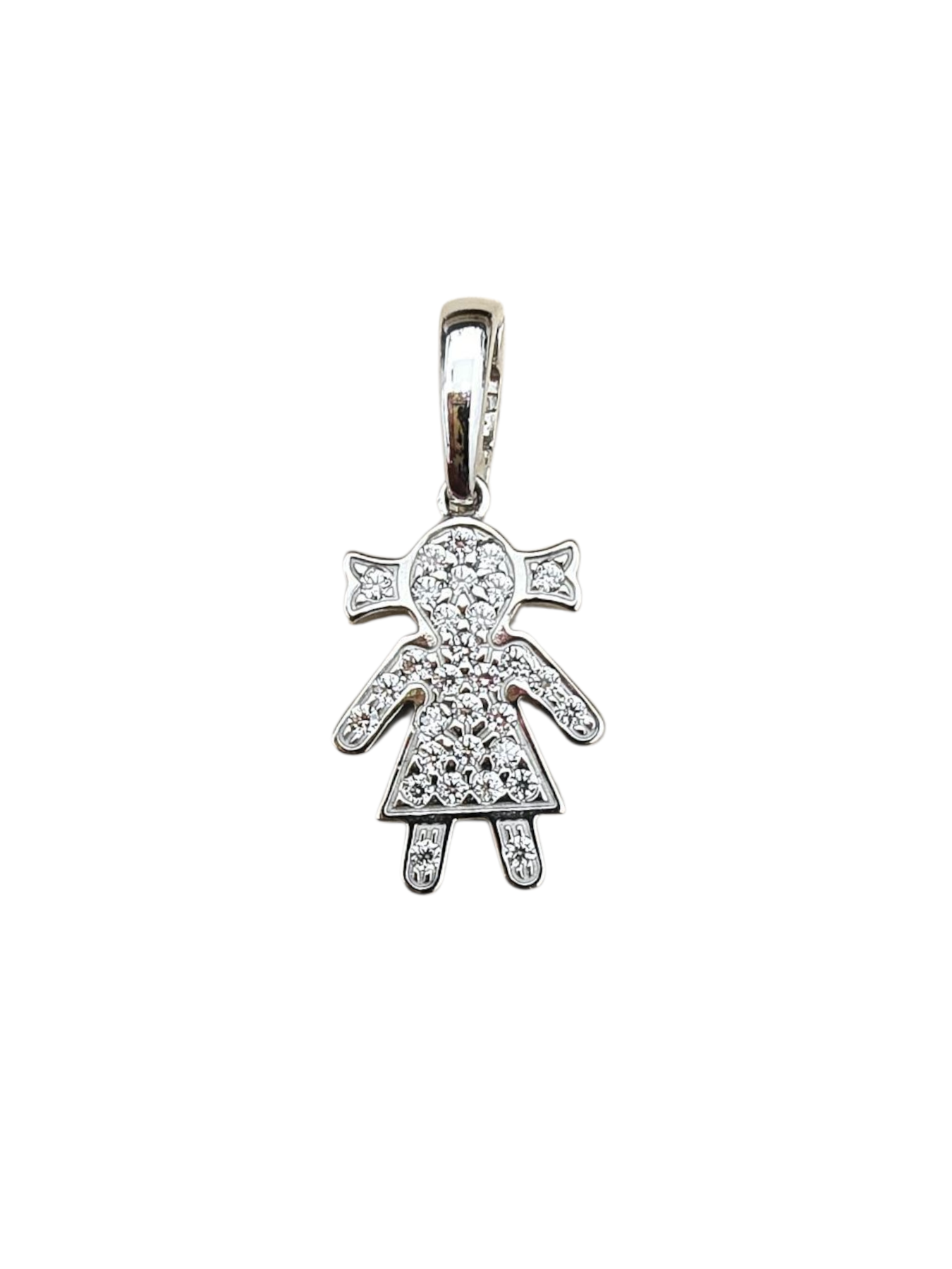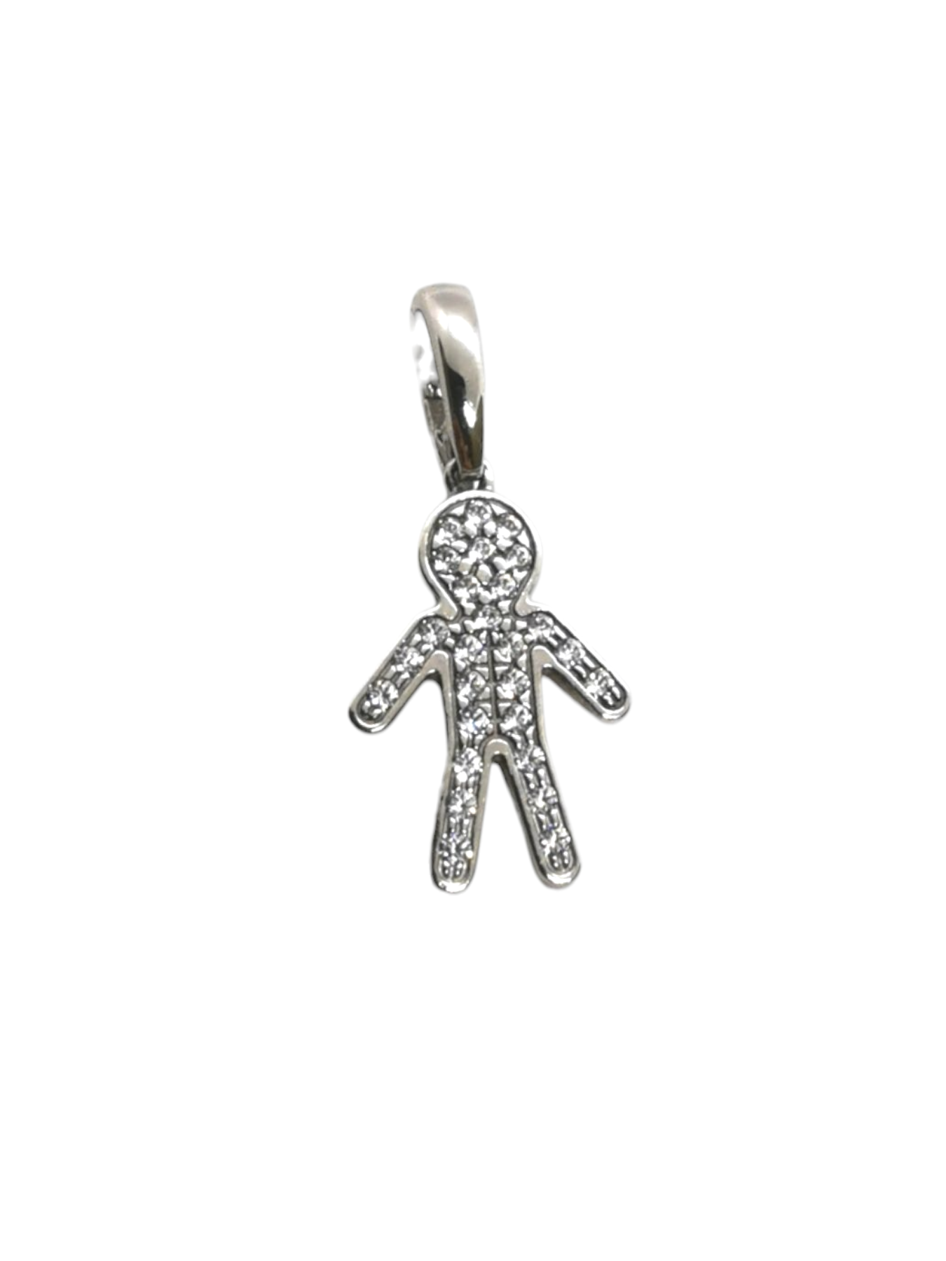 Ciondolo con contromaglia apribile realizzato in oro bianco 18kt e arricchito da zirconi incastonati a mano.