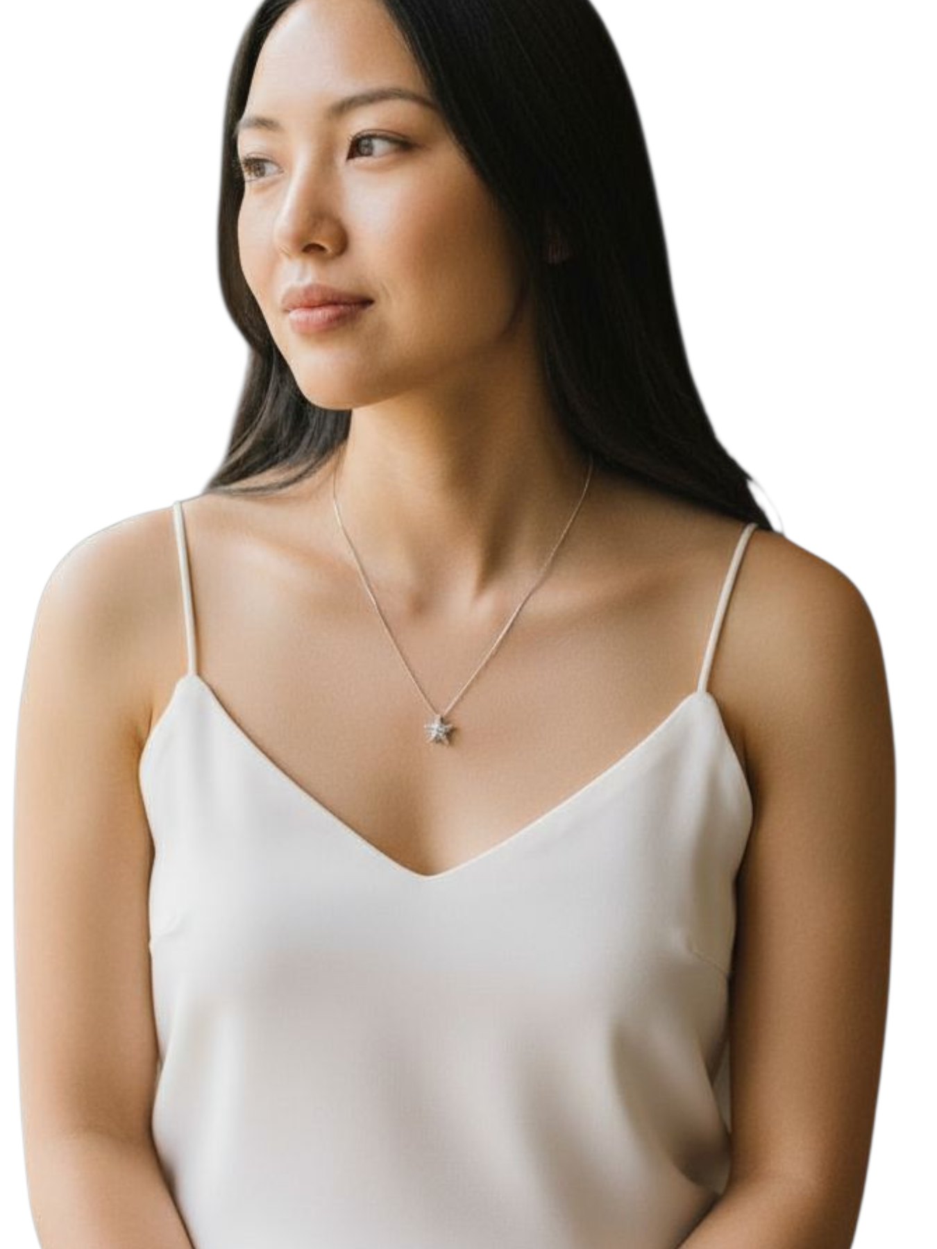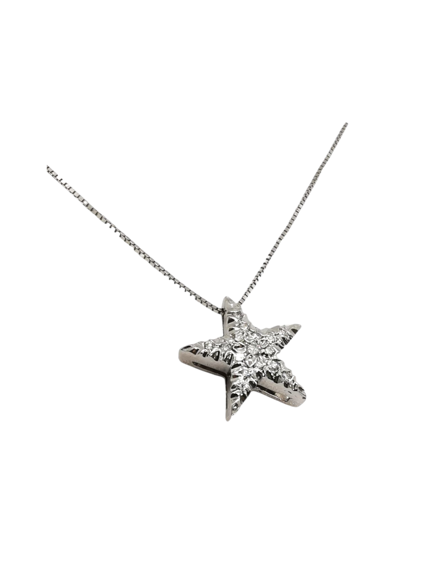 Girocollo firmato Miluna realizzato in oro bianco 18kt con veneziana e ciondolo a stella con brillanti incastonati.