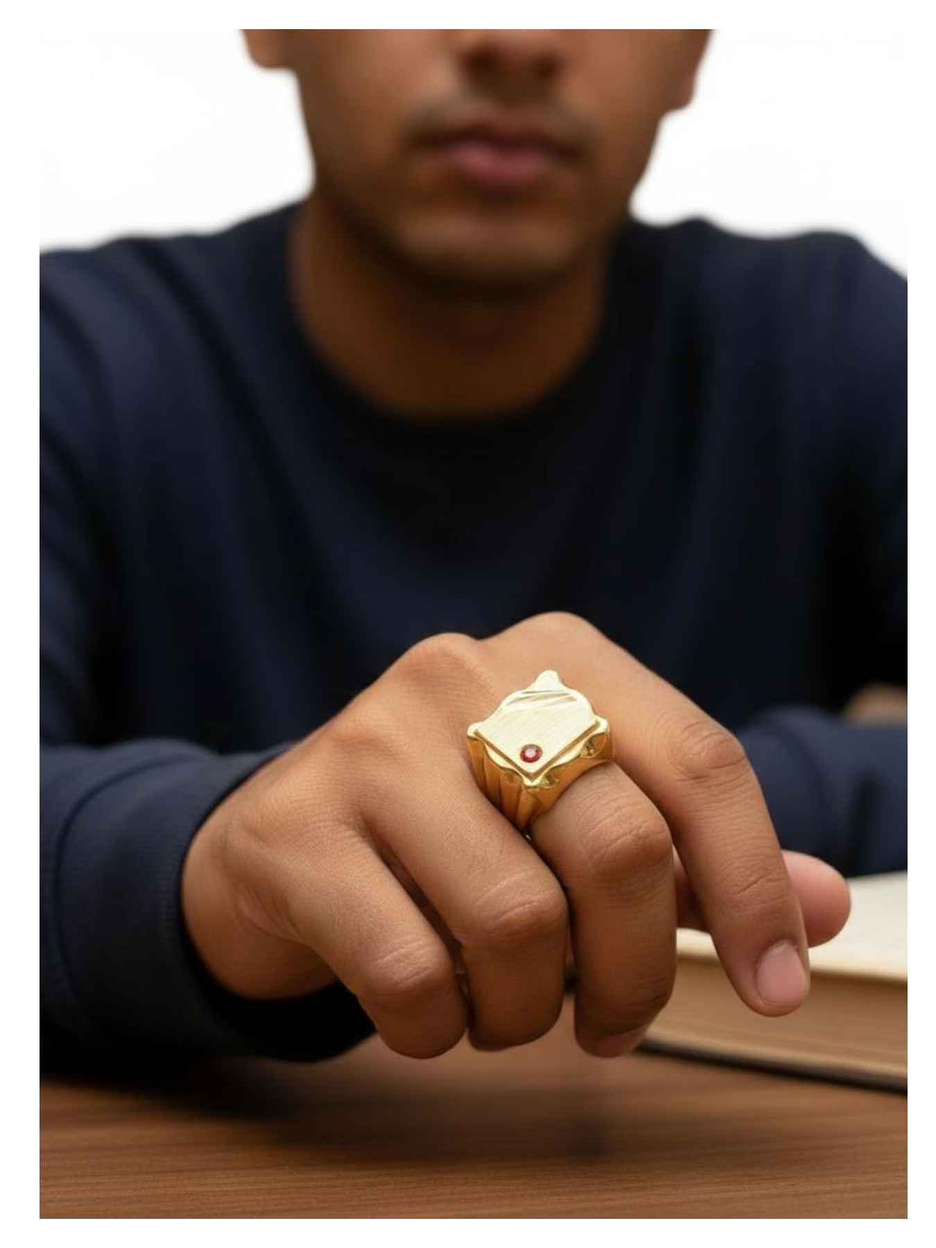 Anello realizzato in oro giallo 18kt a finitura lucida con pietra rossa.